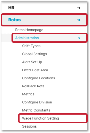 - Use the side menu and go to Rota > Administration > Wage Function Settings