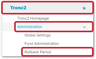 - From the side menu, go to Tronc2 > Administration >Rollback Period