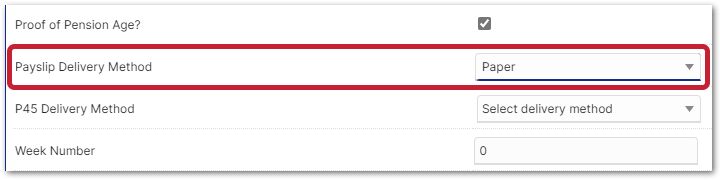 - Use the Payslip Delivery Method drop-down and select either Paper, Email, or ESS