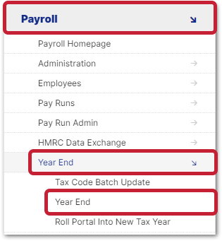 - Select the Burger Menu then go to the Payroll Module > Year End > Year End