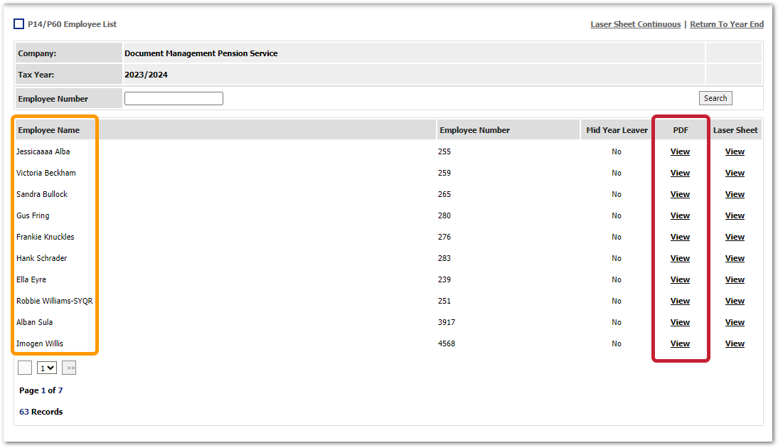 - Find the required employee and from the 'PDF' column, select View