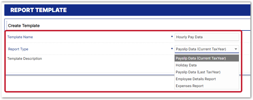 - Go to HR > Reports > Customised Reports > Create Template (from top-right corner)