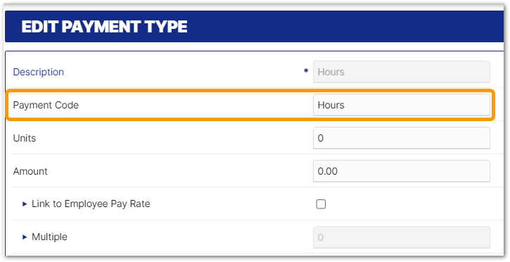 Payment codes must match what is entered in the 'Payment Type' screen on the system