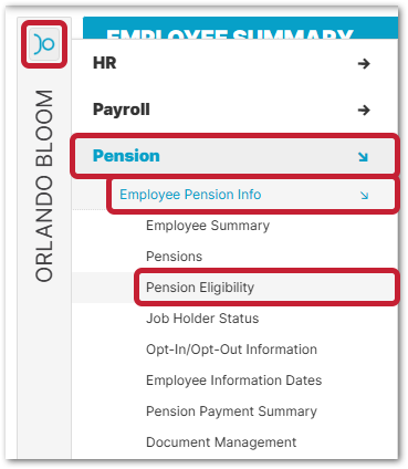 - Use the employee side menu and go to Employee Pension Info > Pension Eligibility