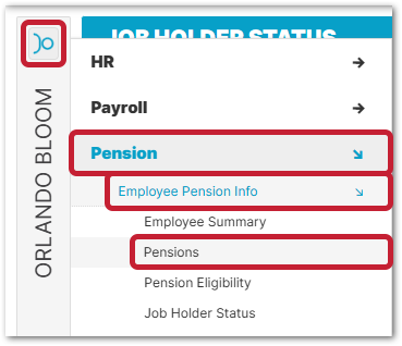 - Use the employee side menu and go to Employee Pension Info > Job Holder Status