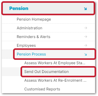 - Use the side menu and go to Pension > Pension Process > Send Out Documentation
