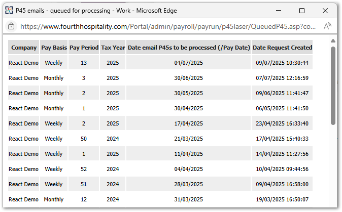 - All employees set to Email will have their P45 sent to the personal email address held in their HR record