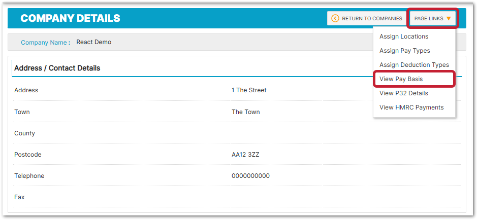 Fig.4 - 'Page Links' > 'View Pay Basis'