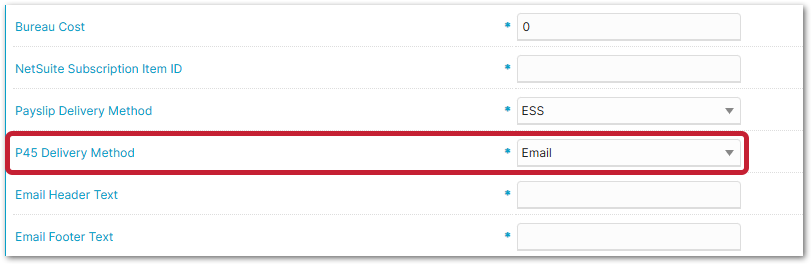 - Employees must have their P45 delivery method set to Email