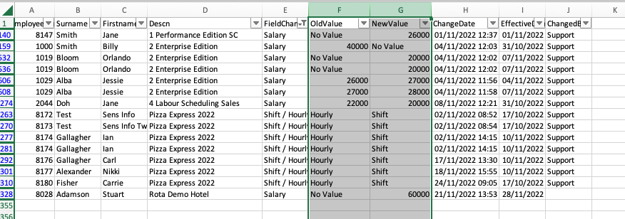 There is however alternative report 'Employee history report' which can be exported into excel. The 'Employee history report' report is access driven so please ensure access is granted to run the report.
