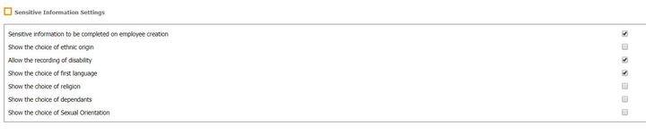 Sensitive information can be captured by turning on the settings in HR > Administration > Global Settings > Edit Sensitive Information: