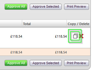 Purchasing > Order Management > Locate relevant order line > Copy Button (far right hand side):