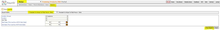 The easiest way to pull a report for a specific date range is to to use the Forecast vs Actual vs Paid Hours - Daily export. You can find this in Rotas > Reports > Exports > Export Name = Forecast vs Actual vs Paid Hours - Daily.