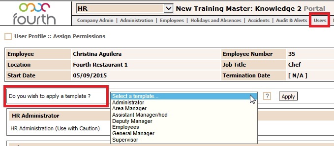 If the template assigned does not have the correct access, you can either change the template which will update for all users on this level, or assign a relevant template to the employee via Payroll > Users > Assign user access > User profile