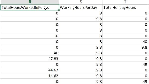 I have tried many reports, but they do not give the information above combined. They either show you the hours worked only or hours worked and the word ”HOL”, but without the equivalent of how many hours are calculated for “HOL”.