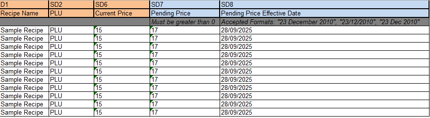 1. Updating multiple recipe prices at FnB action level is existing functionality, see more here: Inventory Restaurants: Publishing a Recipe to the Stock System. This shows the editing of prices at multiple sites (and can be accessed via FnB Actions > Edit Site PLU & SP)